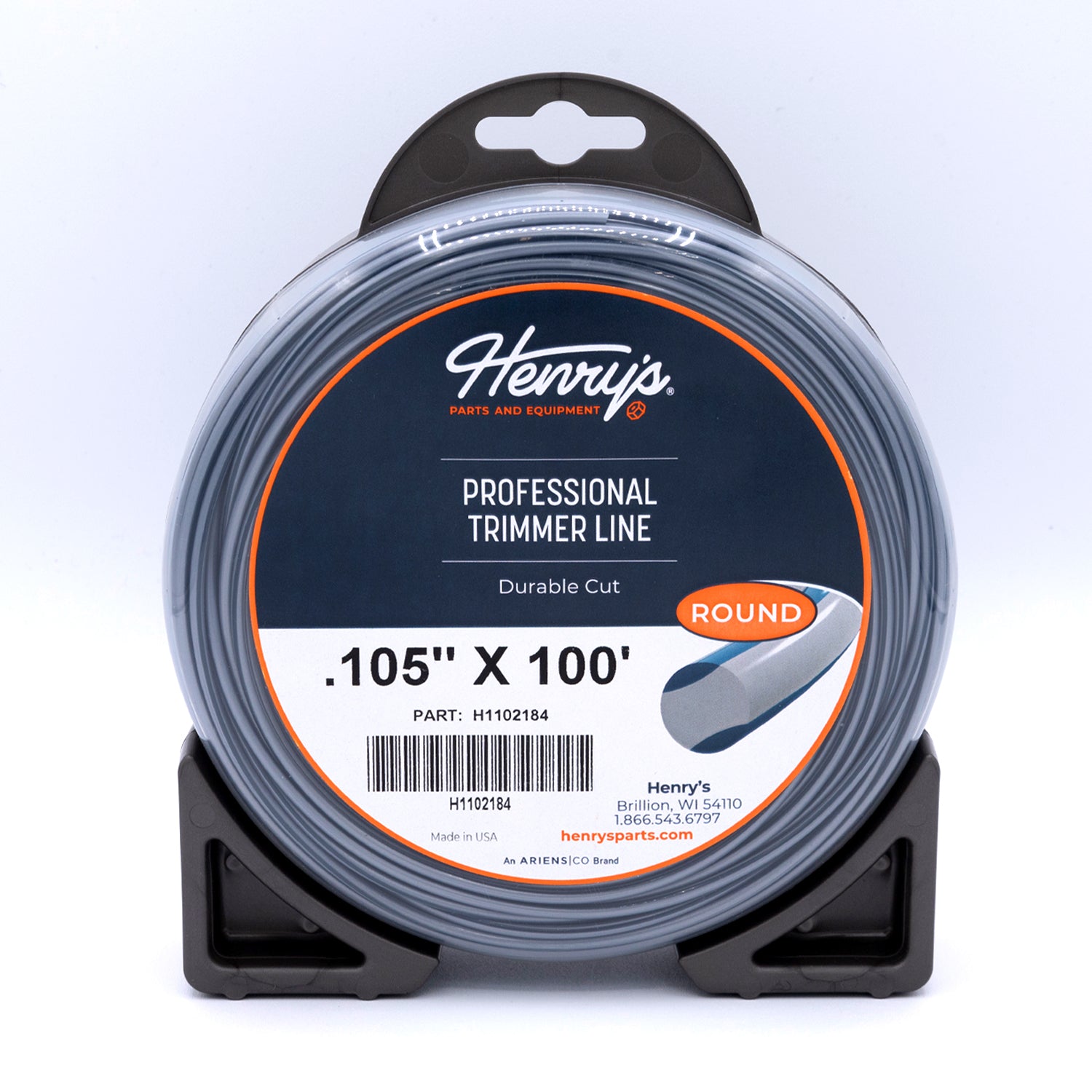 Round, Medium Donut .105 in x 100 ft. Henry's trimmer line, featuring twin-layer co-extrusion, combines strength and flexibility for professional-grade results. Protective blue layers and flexible gray core enhance longevity and overall line durability.