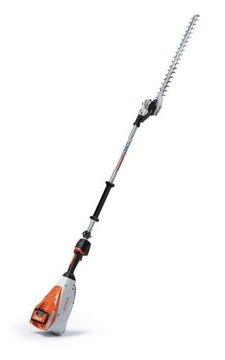 For professionals seeking optimal control and uncompromising performance in a battery-powered tool, the HLA 135 K (145°) extended reach hedge trimmer delivers with 12 cutting positions to maximize adaptability. This trimmer lets pros enjoy the clean, quiet benefits of battery-powered equipment without compromising performance and durability thanks to zero exhaust emissions and low noise. Built using the same shaft, gearbox and blades as found on the HL 94, it combines a proven, durable weather-resistant design with a variable-speed trigger with three performance levels, allowing pros to take on jobs with the versatility and performance they demand. The powerful brushless motor is virtually maintenance free. The onboard battery slot can support either an onboard battery, or a backpack battery for even longer run times.