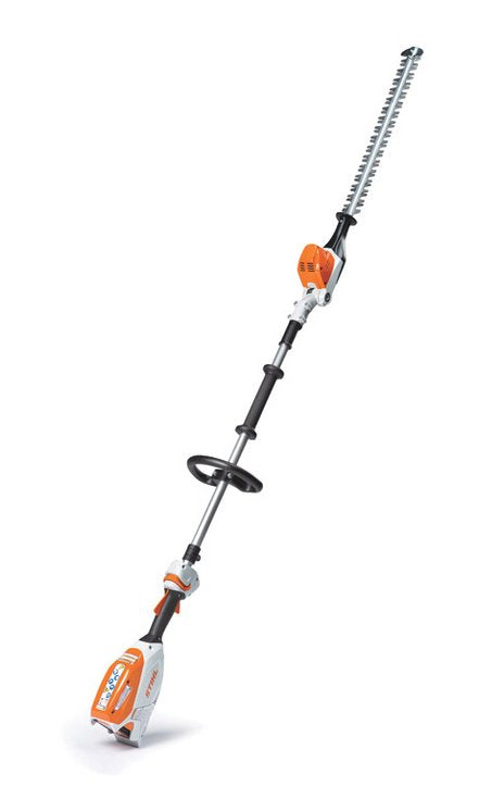 The HLA 66 Extended Reach Hedge Trimmer gives professionals the performance they demand with the green benefits of Battery Power. Made By STIHL. Quiet operation allows pros to work earlier in the morning and later in the evening, as well as tackle jobs in noise-sensitive locations. Its 115° articulating head with 20” cutter bar gives users the versatility they need to match the angle of the cutter bar to the task at hand. With its low maintenance brushless motor and variable-speed trigger, the HLA 66 provides the power and control needed to get the job done.